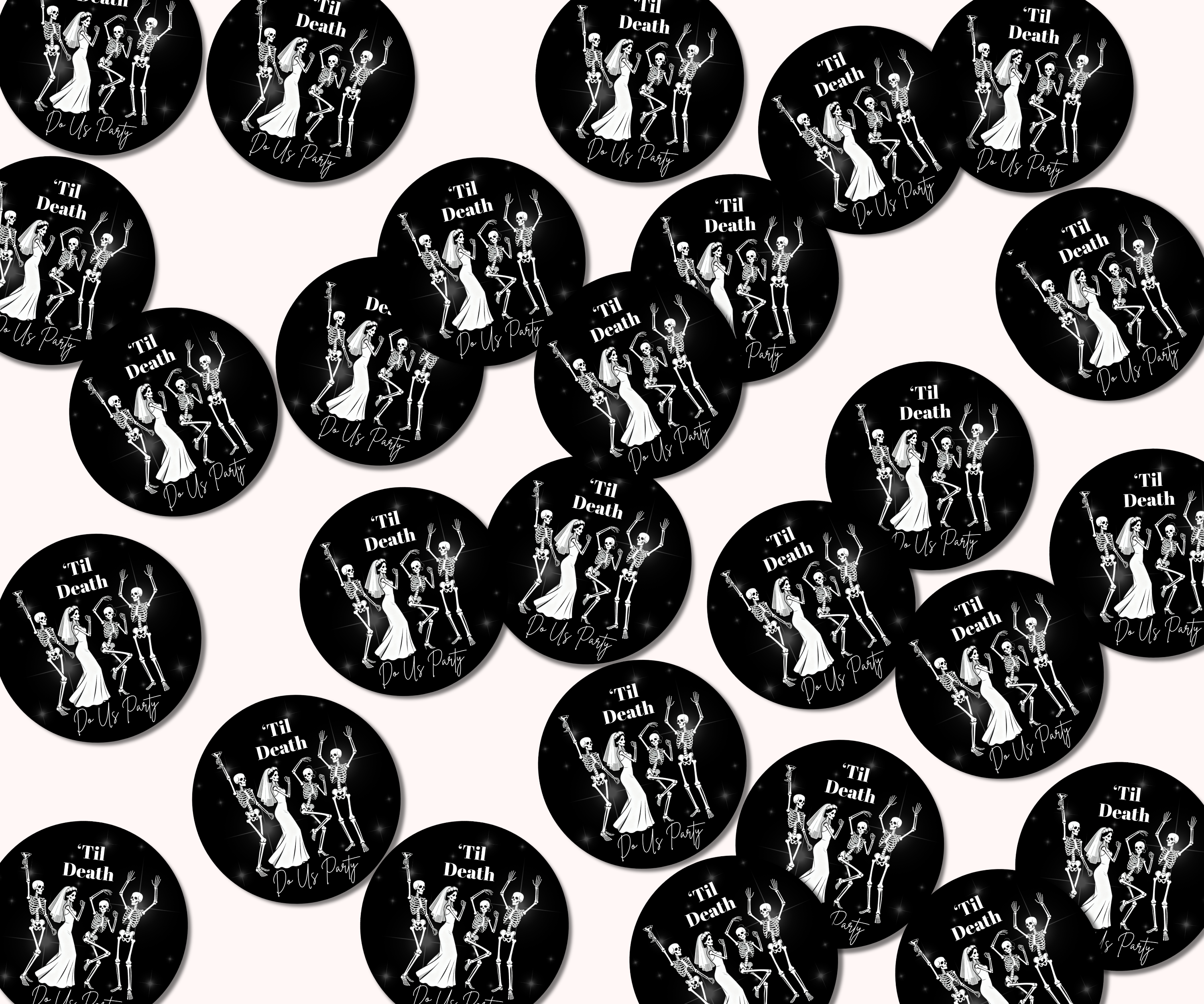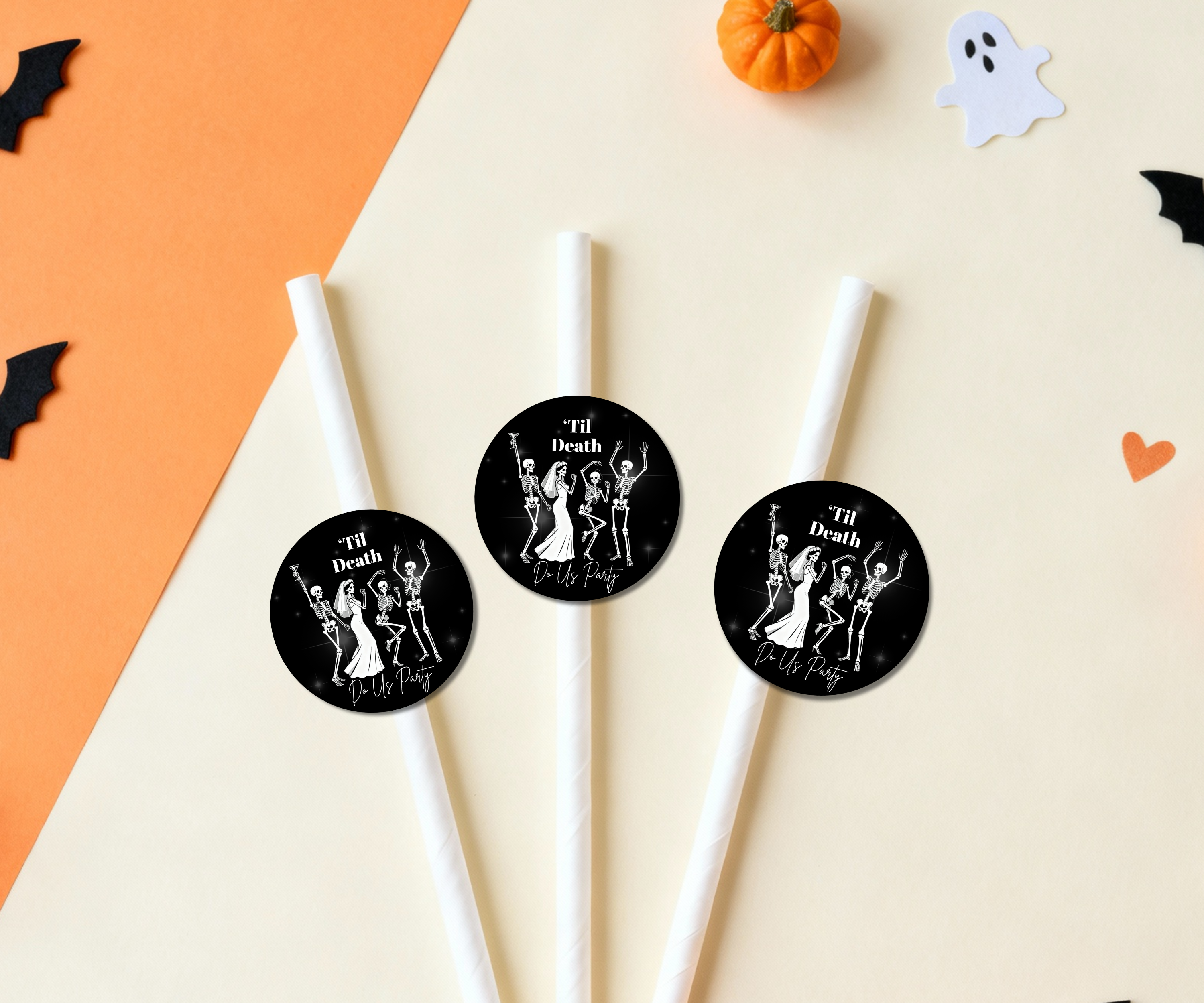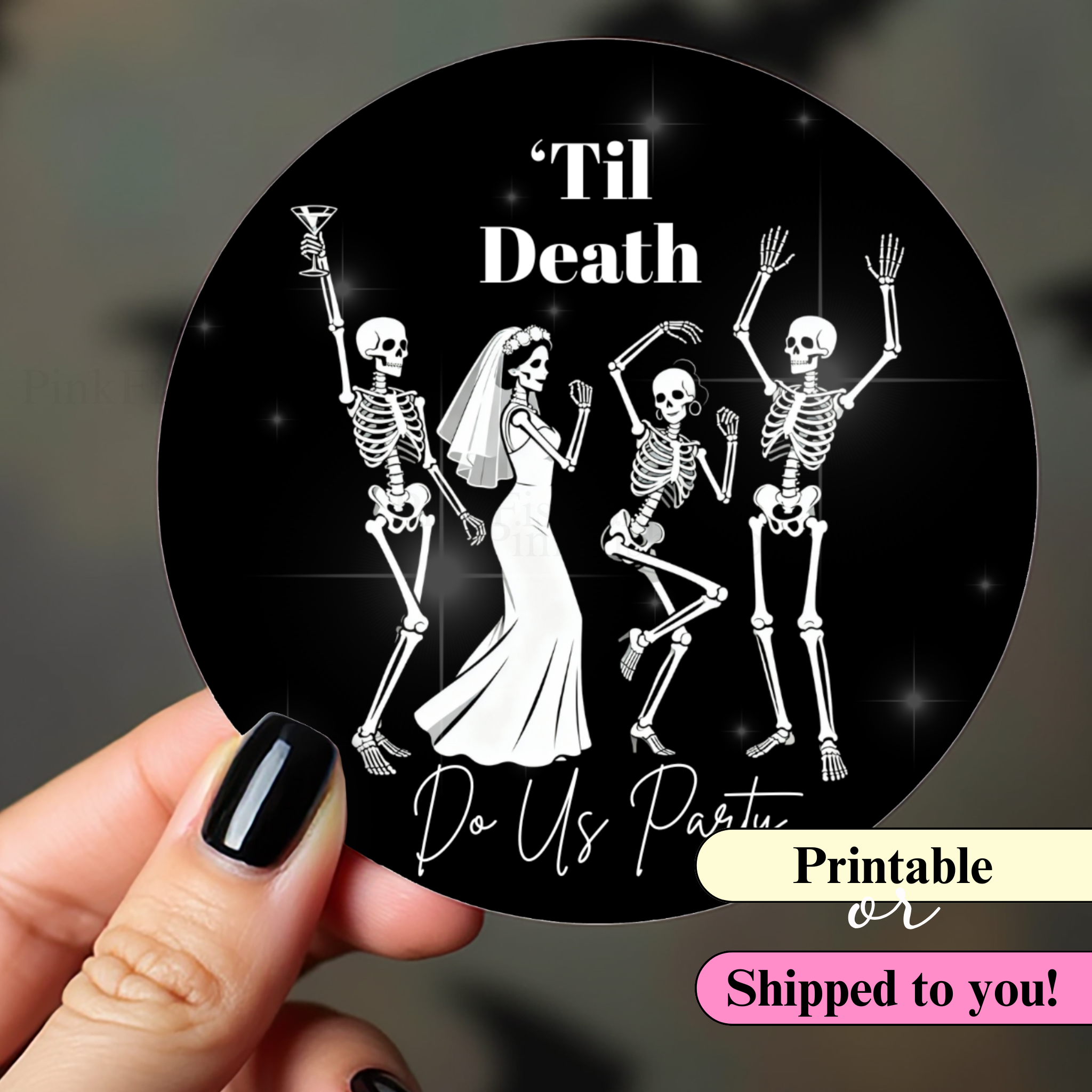 Having a Halloween themed bachelorette? Look no further than these these spooky 'Til Death Do Us Party Designs. Available as either a digital download if you would like to print and cut yourself, or as a printed item we make and ship to you!
