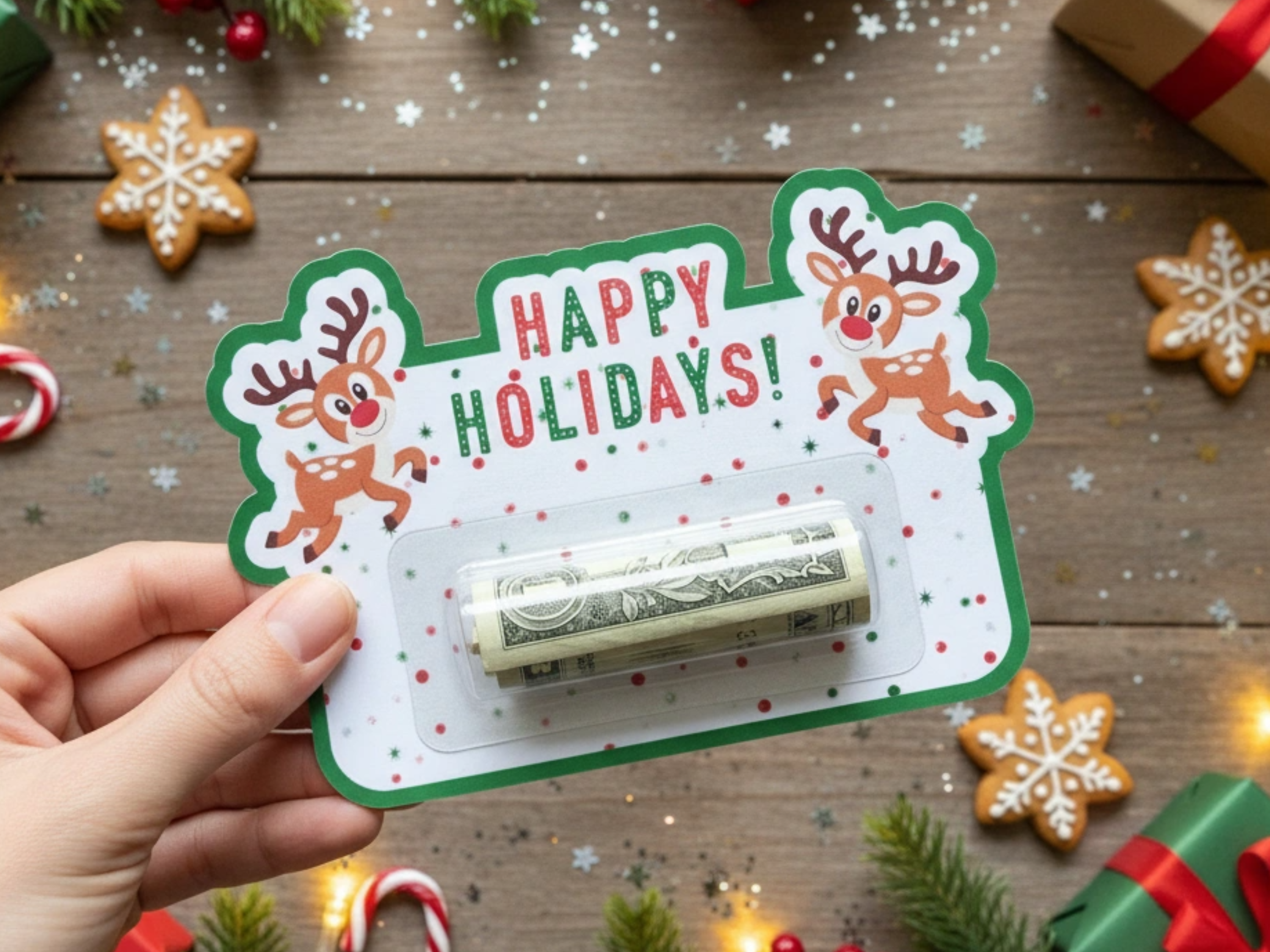 Make gifting cash extra cute this holiday season with these adorable cash holder cards. This Happy Holidays card is a perfect way to give some cash to a loved one. Whether gifting a teacher, child, friend, or bus driver, this is a fun way to make your cash gift feel extra special.