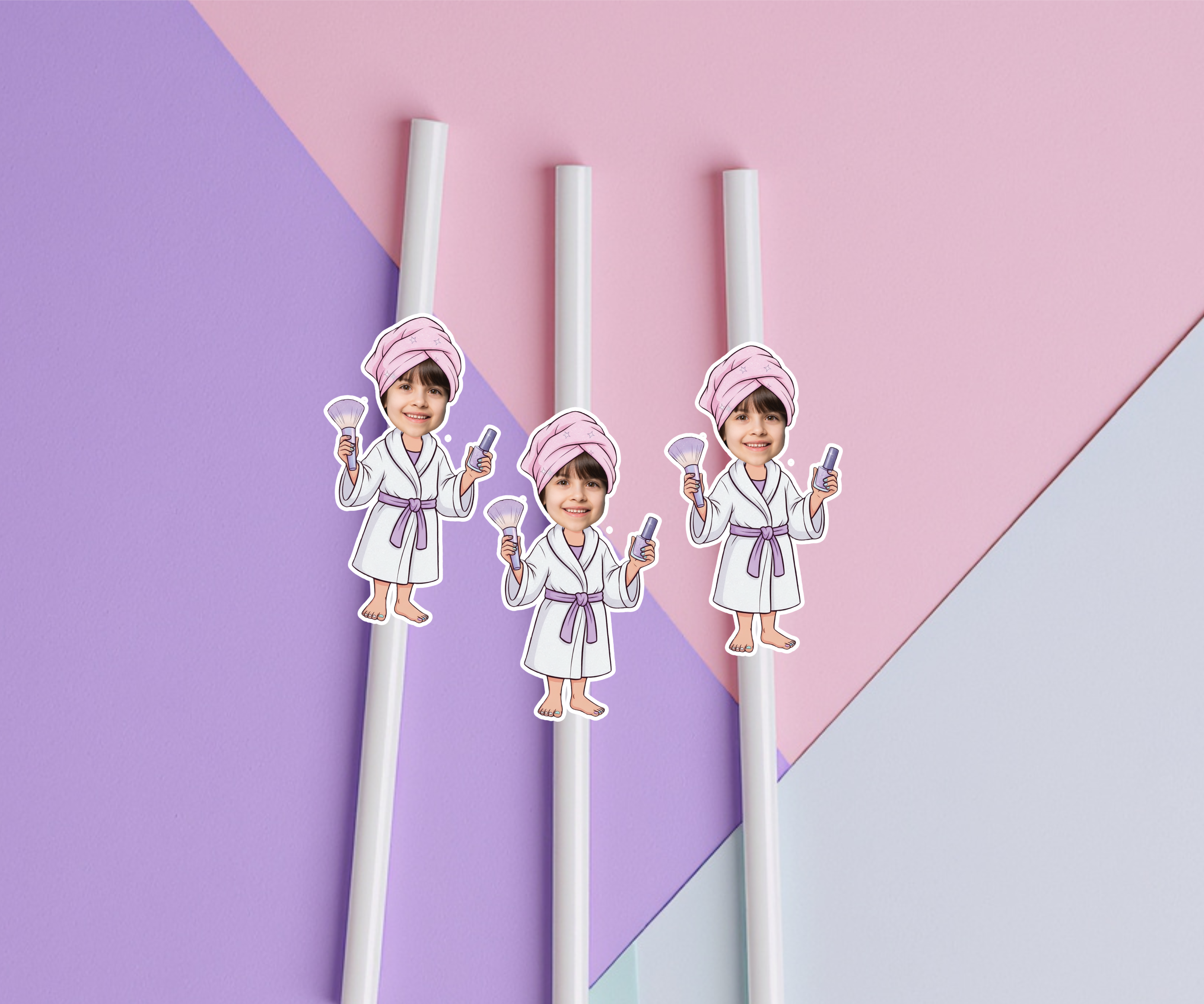 Printed and shipped to you: We will make the party decorations and ship them to you! Choose between cupcake toppers, drink stirrers, stickers, confetti, banners, and straws.