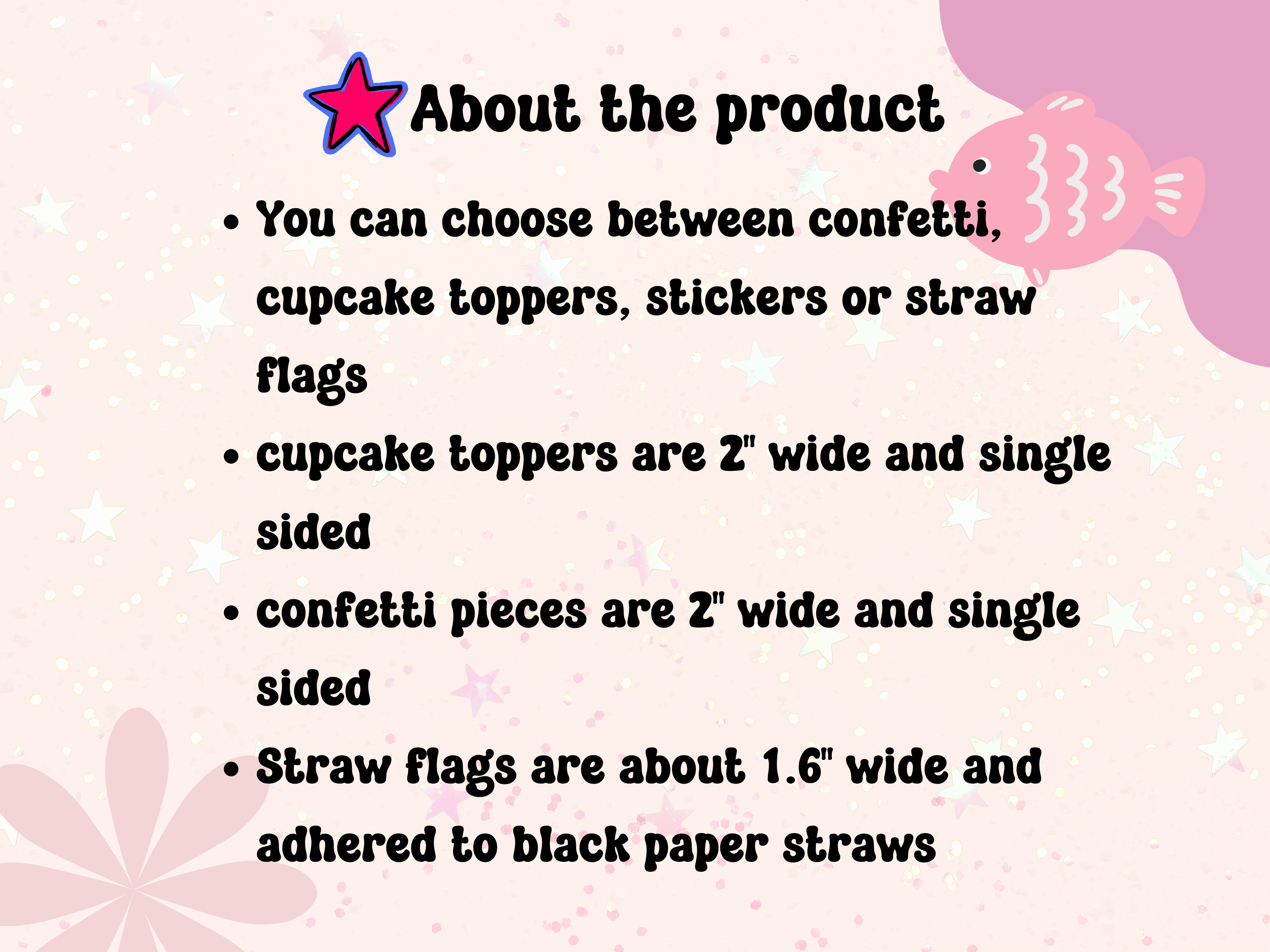 ⭐CUPCAKE TOPPERS: 2" wide and single sided